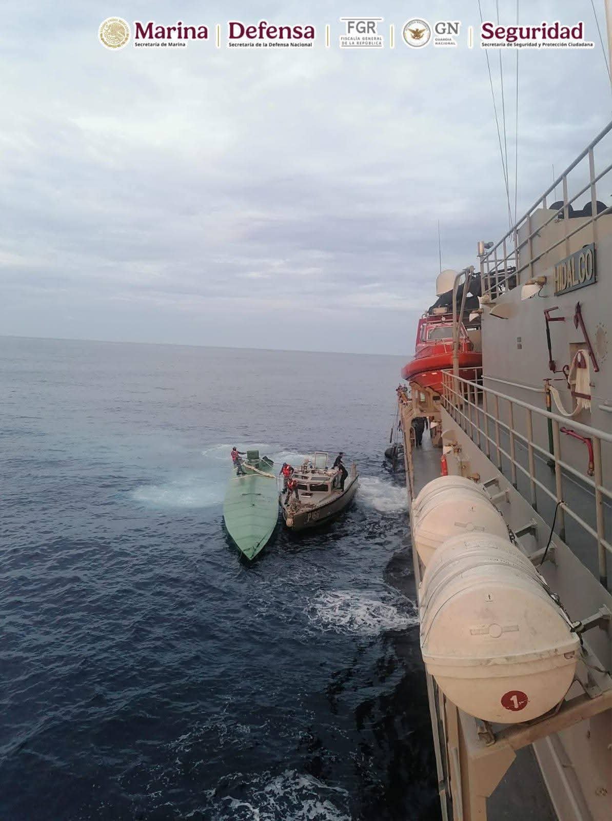 La carga y embarcación ilícita fueron aseguradas y el personal detenido puestos a disposición del agente del Ministerio Público en la FGR, quien definirá su situación legal, con el fin de integrar las carpetas de investigación correspondientes.