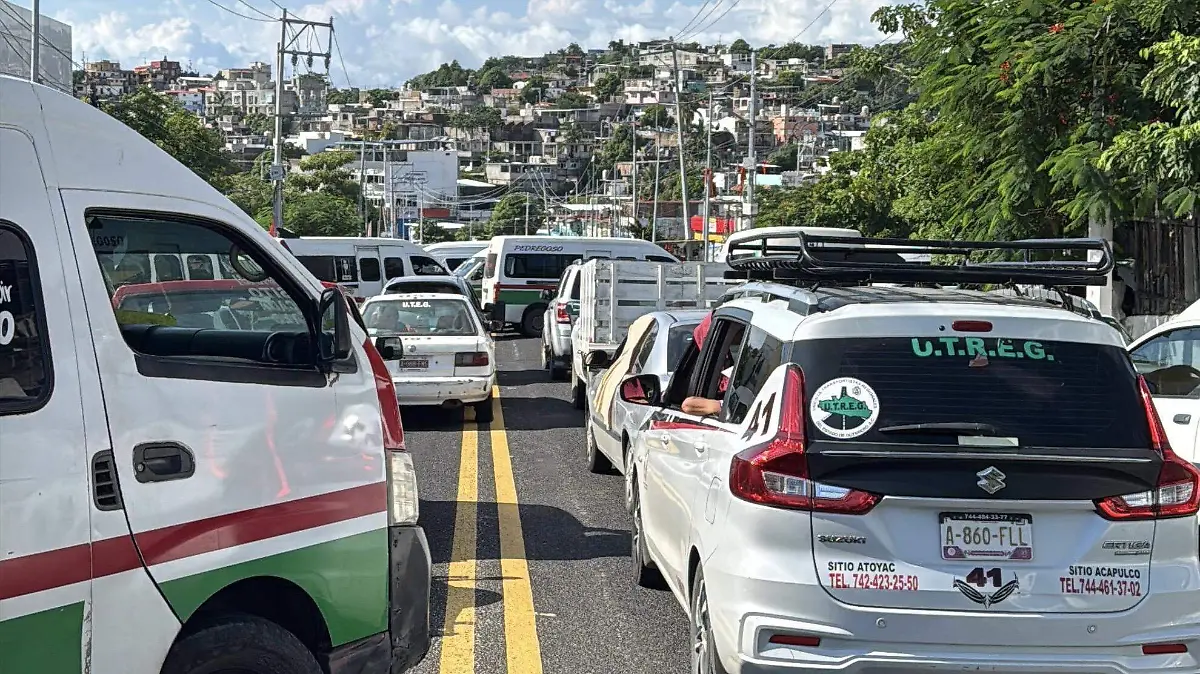 Choferes de camionetas del servicio público tipo Urvan realizaron un paro de labores y bloquearon la carretera federal Acapulco–Zihuatanejo, a la altura de la colonia Jardín Mangos, en la zona Poniente del puerto, para denunciar presuntos abusos de autoridad por parte de elementos de la Policía Municipal.
